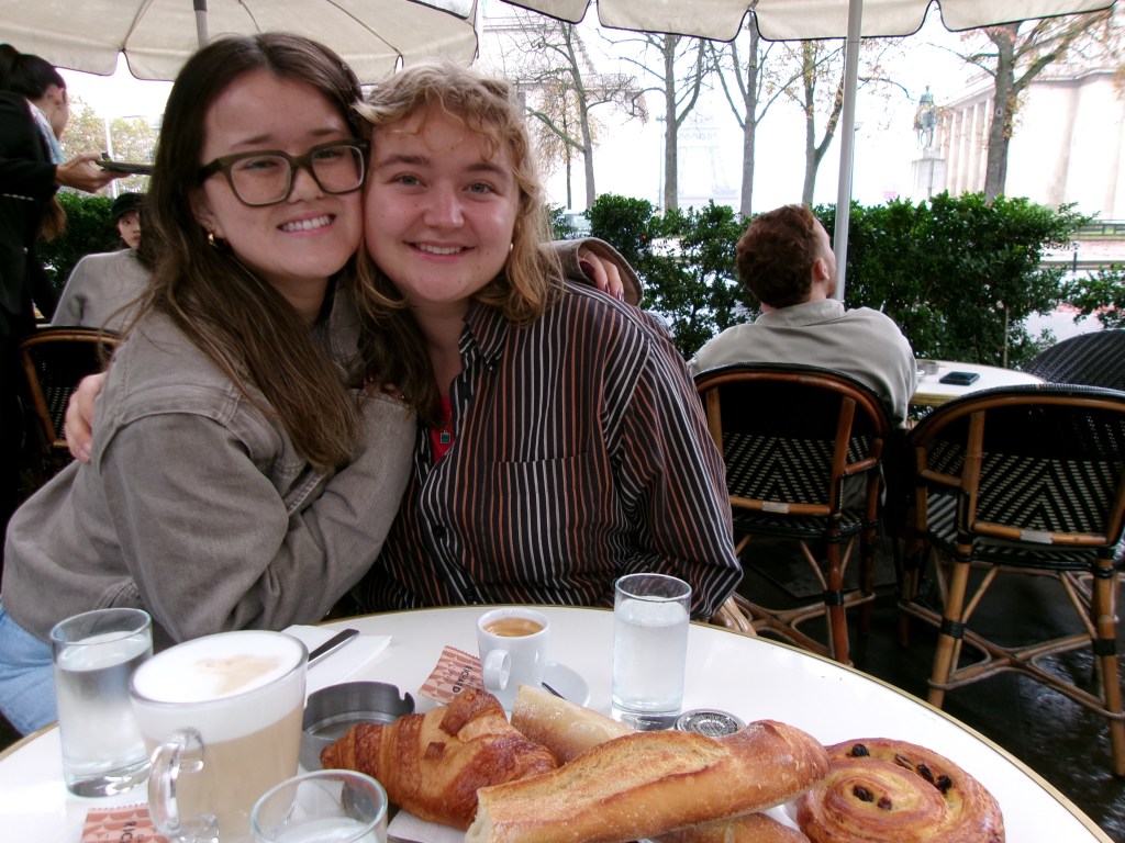 Lani and Bea arrived around 10pm, and we didn’t waste a minute. After a night of catching up over Burger King (Paris ed.), crepes, cocktail(s), falafels, wine, and focaccia, we awoke early the next day to get brunch near the Eiffel Tower. The clouds blocked the view, but the company and food were wonderful.